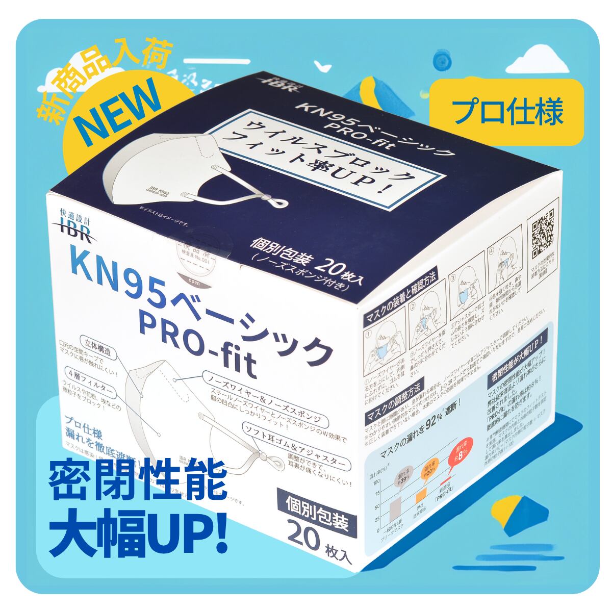 KN95 PRO-fit ホワイト【2箱SET】【立体構造 不織布マスク 個包装 男女兼用 】
