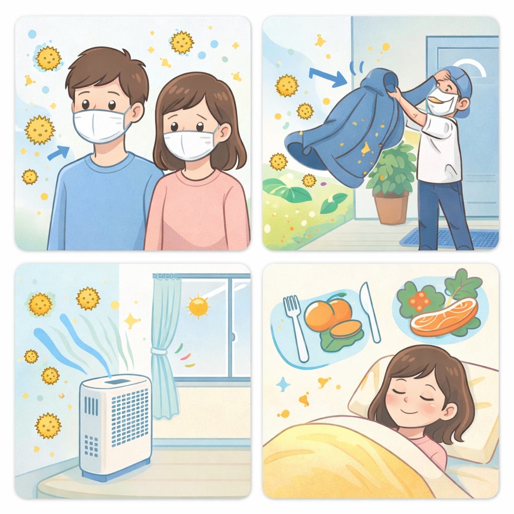 花粉の侵入を物理的に防ぐことは、最も基本で効果的な対策です。 -