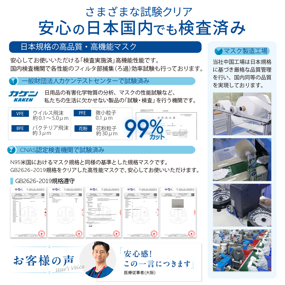 他社のKN95マスクとは異なる着け心地を是非ご体感ください。