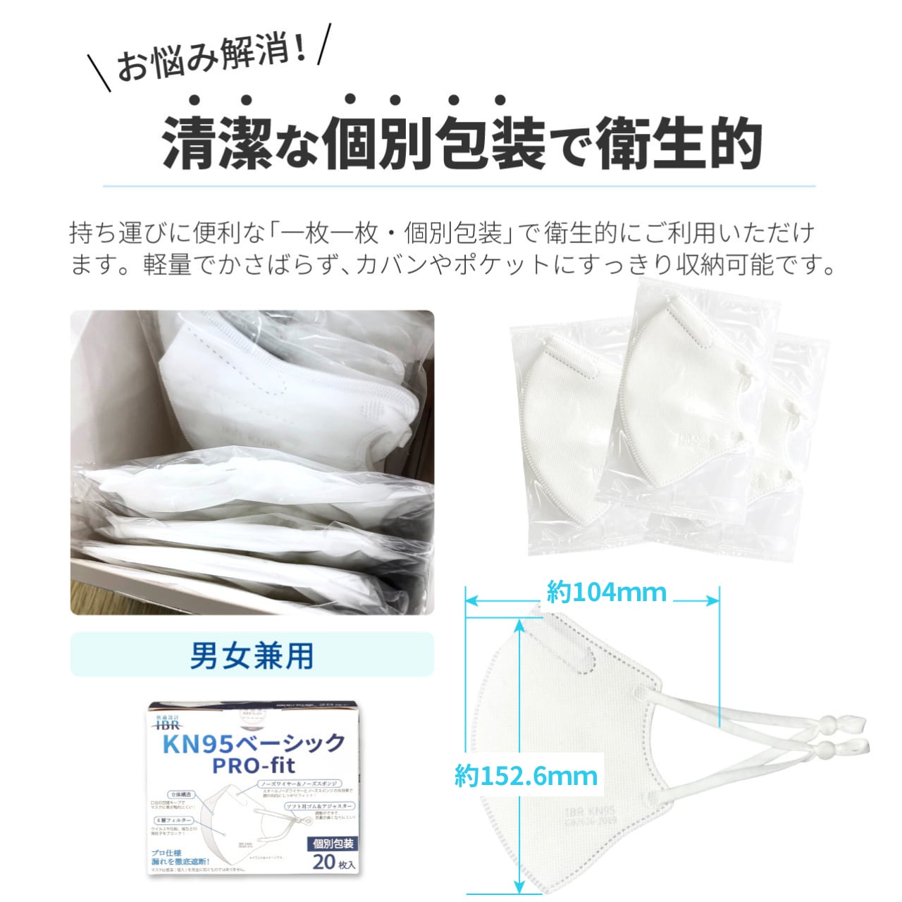 KN95 PRO-fit ホワイト【2箱SET】【立体構造 不織布マスク 個包装 男女兼用 】