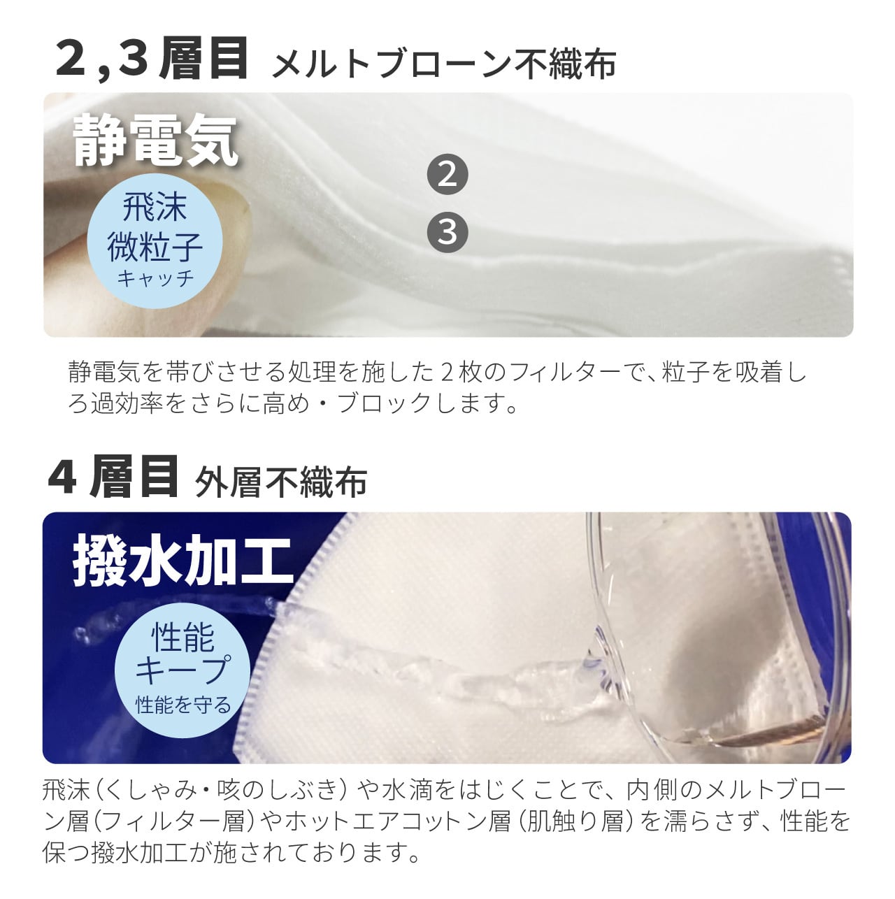 表面の不織布は形状を保つために従来品よりも厚く硬めのものを採用