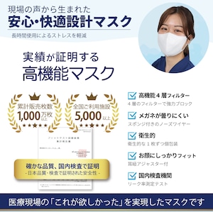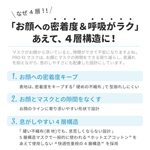 本商品は、お顔とマスクの隙間を最小限に抑え、息のしやすさを最優先するため、ホットエアコットンをあえて省いた4層設計です。