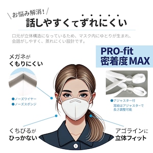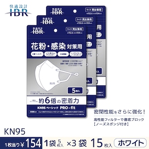 KN95 PRO-fit ホワイト 5枚入り【3袋SET】【立体構造 不織布マスク 個包装 男女兼用 】