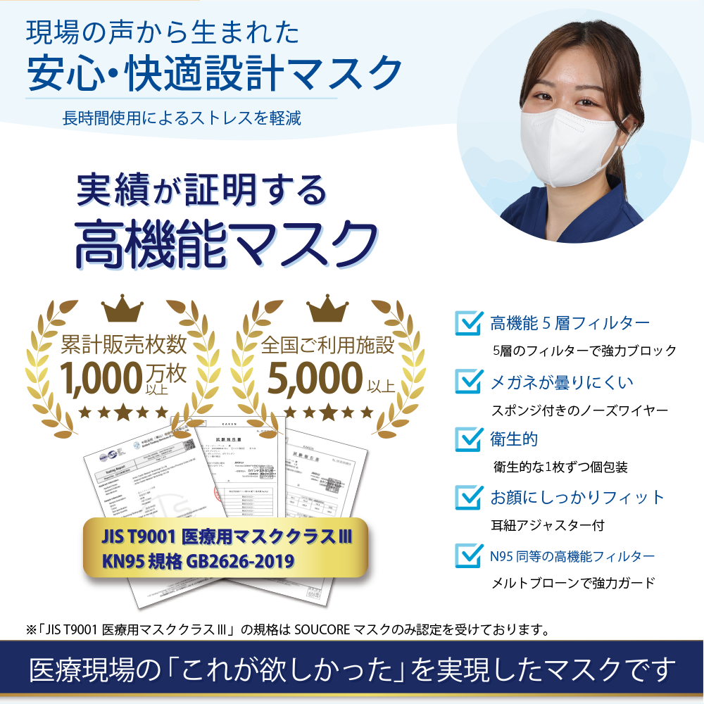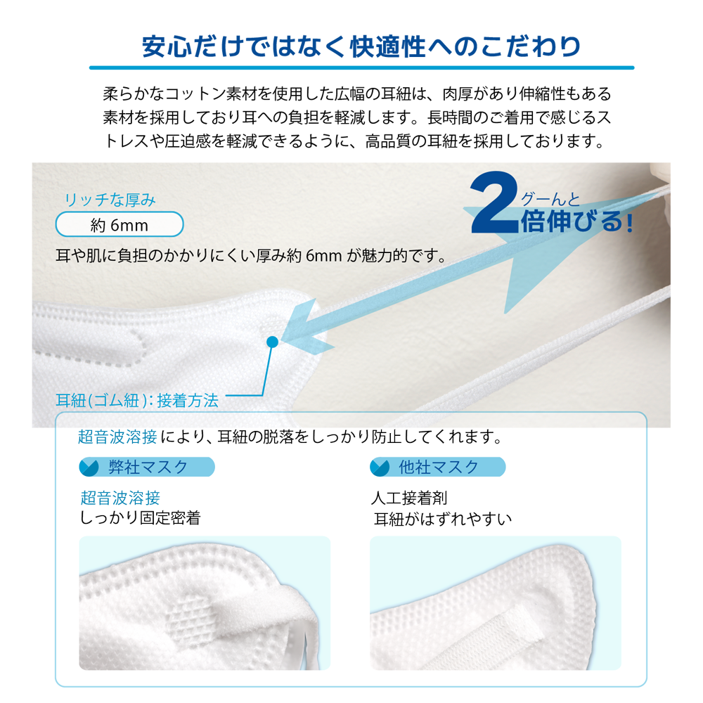 他社のKN95マスクとは異なる着け心地を是非ご体感ください。