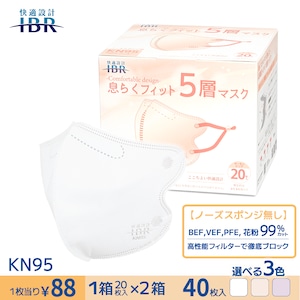 KN95息らくフィット-ノーズスポンジ無し- 【2箱SET】【 5層 CNAS機関認証済み 立体構造 不織布マスク 個包装 男女兼用 】